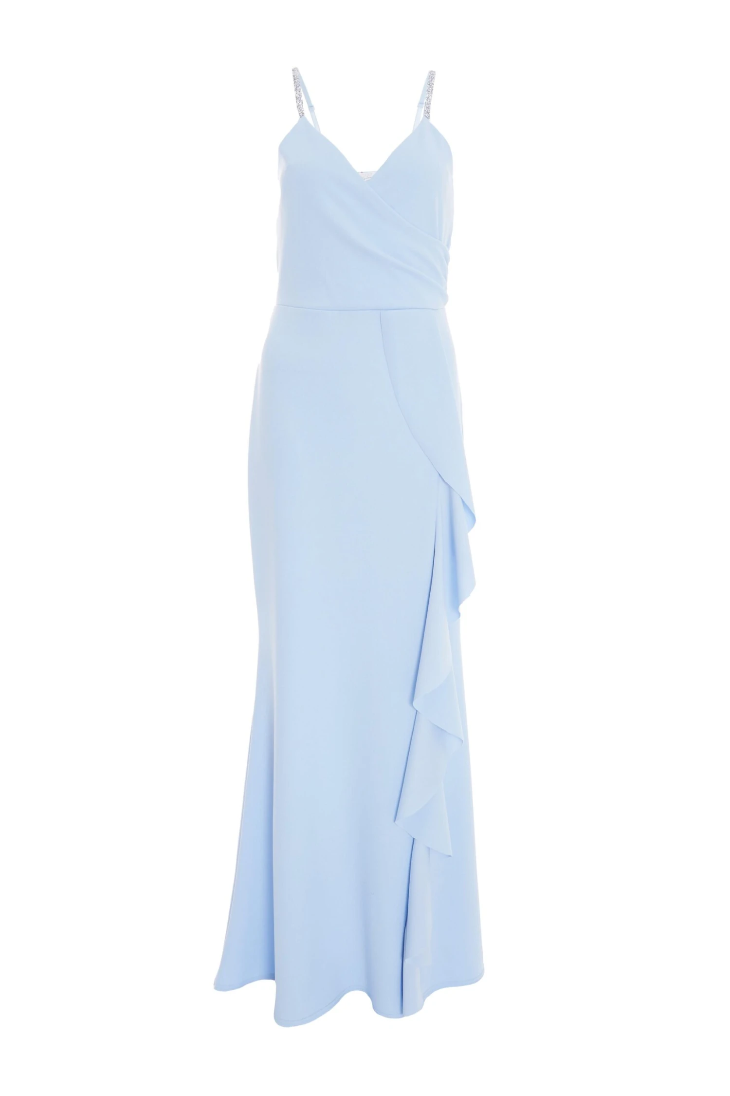 Light Blue Embellished Frill Maxi Dress