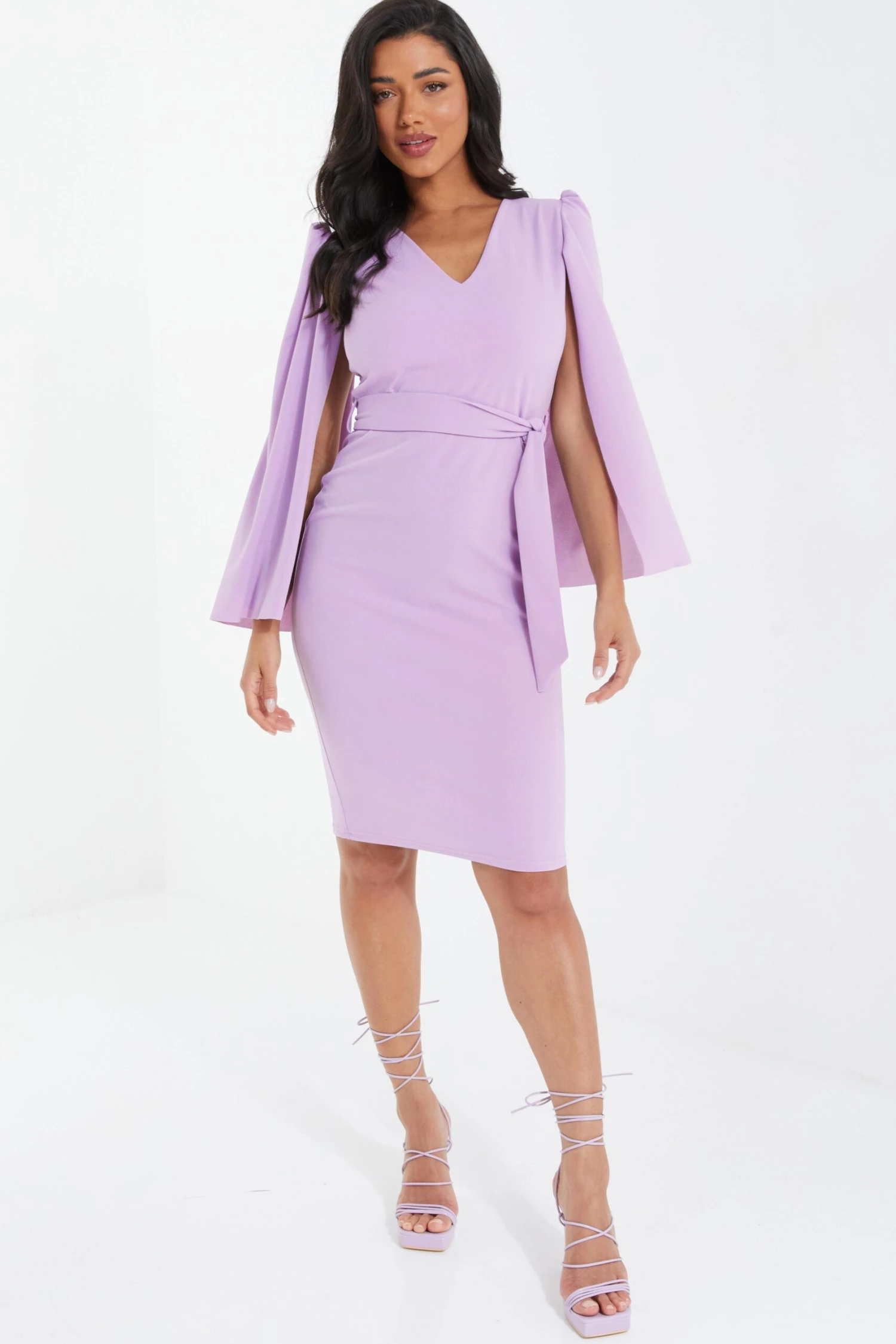Lilac Cape Sleeve Midi Dress