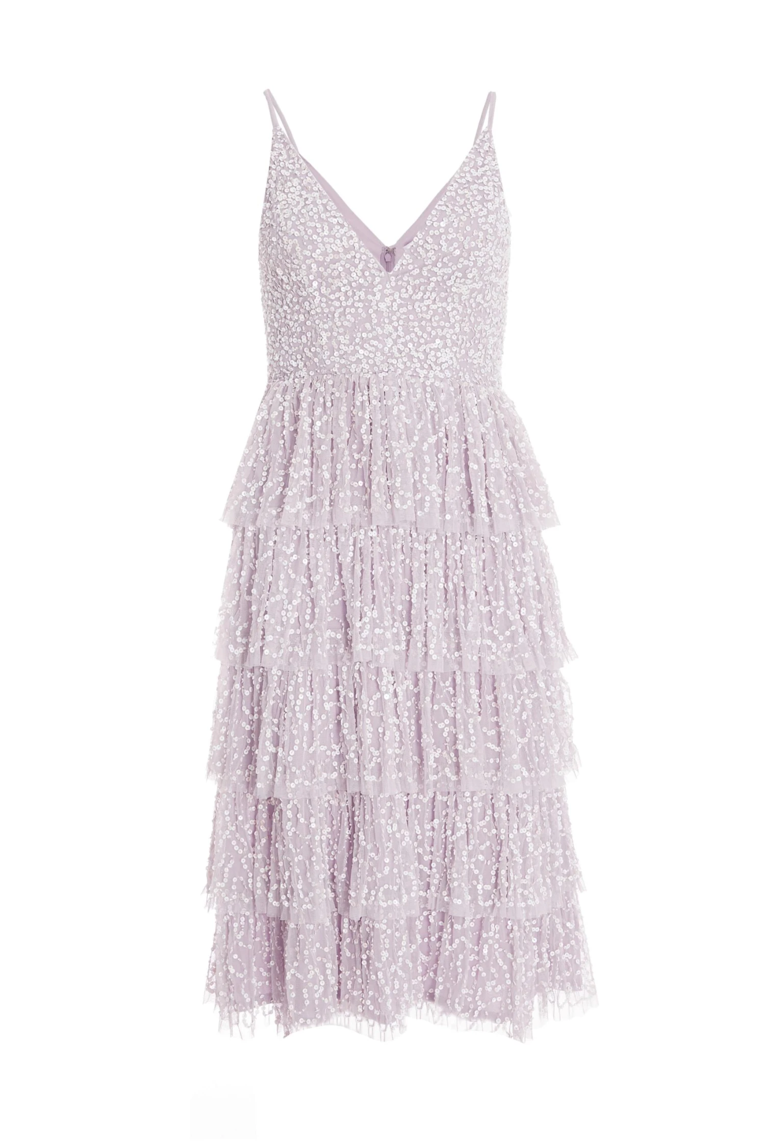 Lilac Sequin Tiered Midi Dress