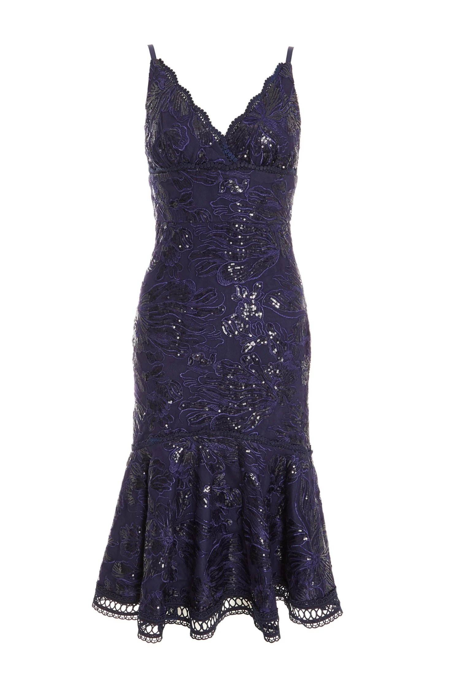 Navy Sequin Lace Midi Dress