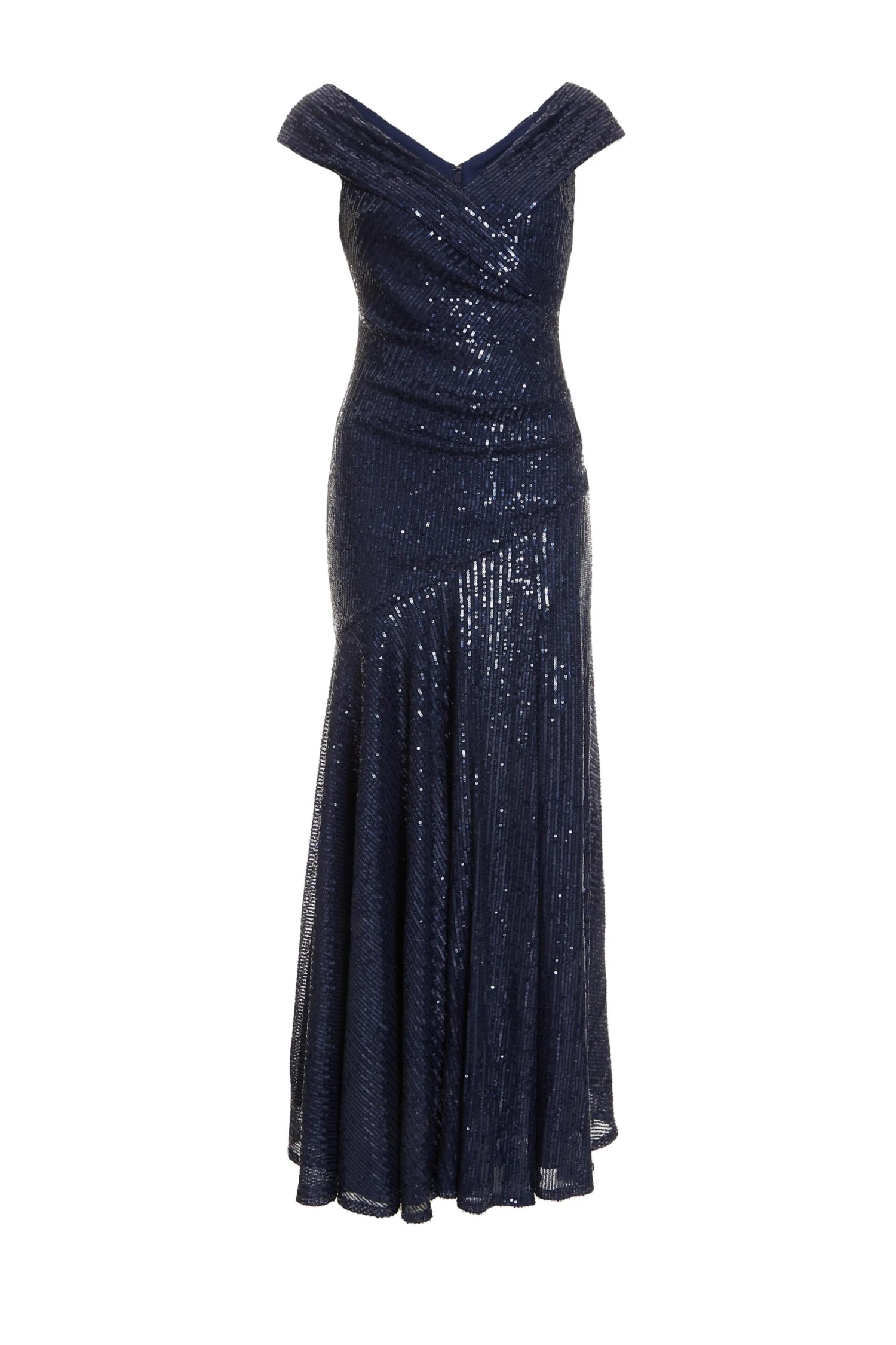 Navy Sequin Ruched Maxi Dress
