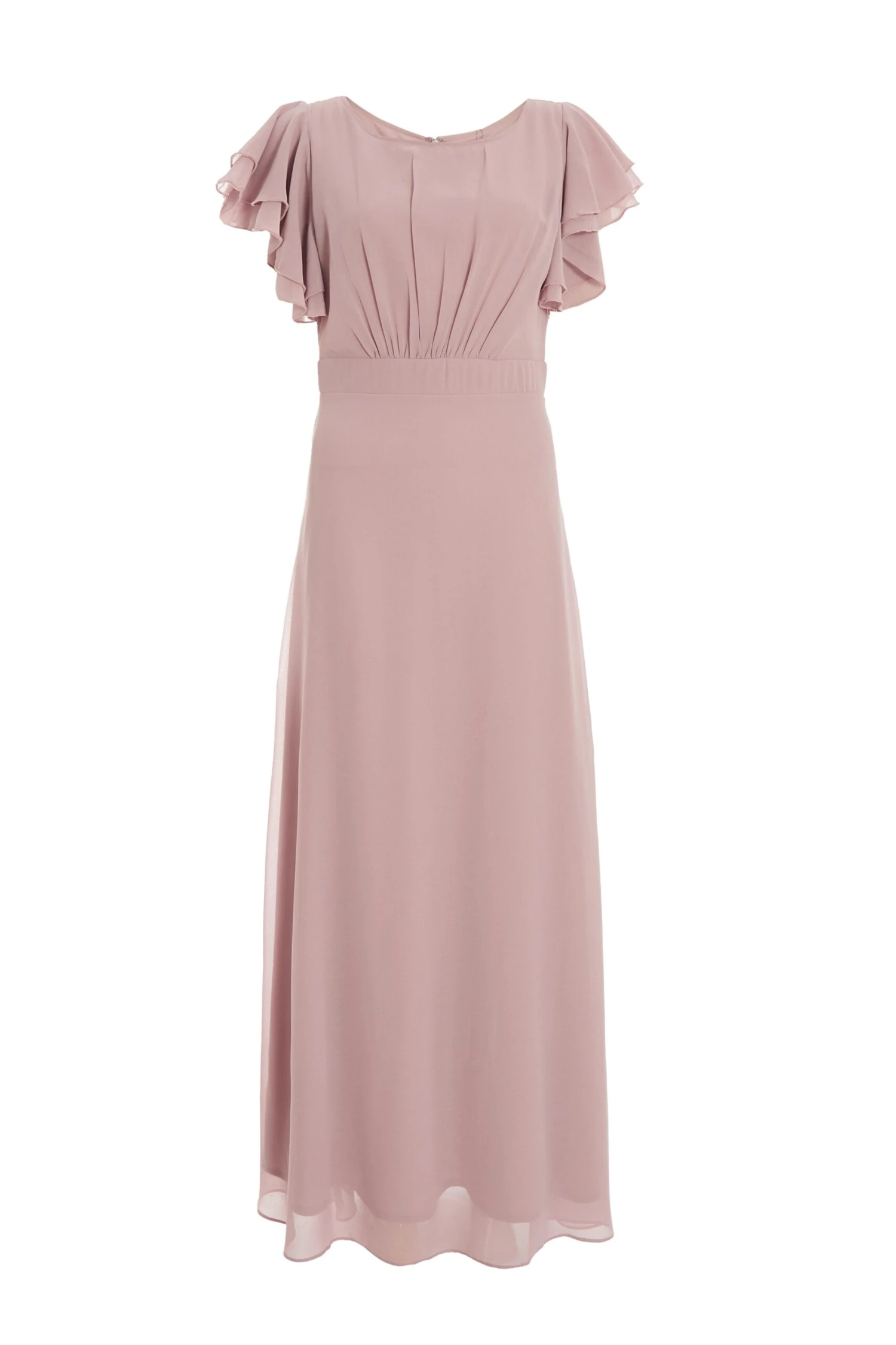 Pink Chiffon Frill Sleeve Maxi Dress