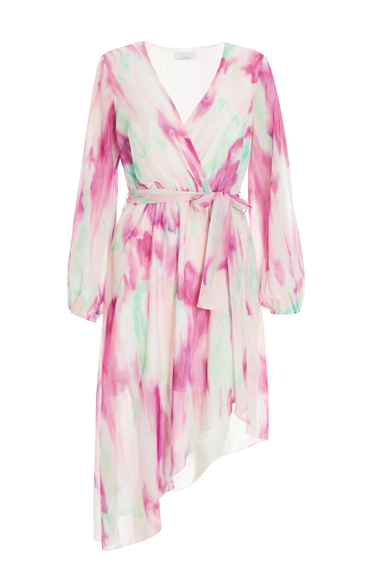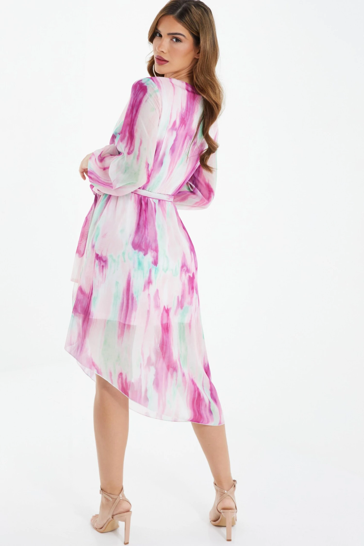 Pink Chiffon Marble Print Midi Dress