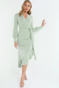 Sage Lace Fishtail Midi Dress